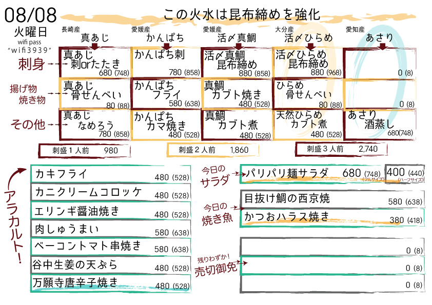 本日の日替りメニュー