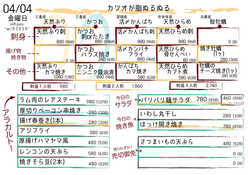 として、ご来店の際には【三重産 かつお】をぜひ。