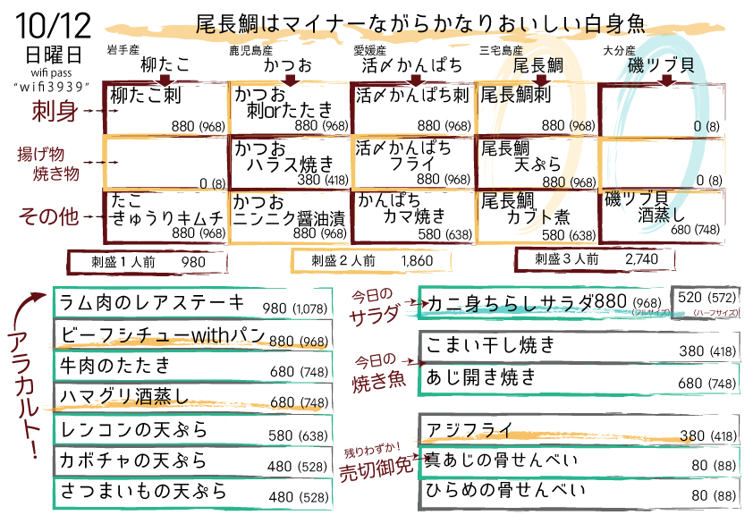 さておき、本日のオススメは【三宅島産 尾長鯛】ですので、ご来店の際にはぜひ。