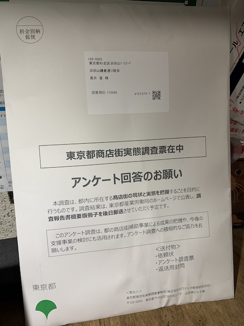 地球そして宇宙という規模で考えた時、この杉並の時間地図上僻地にある浜田山の、さらに端っこにある商店街が「今年のアンケート」に答えなかったところで何の違いがあろうか。