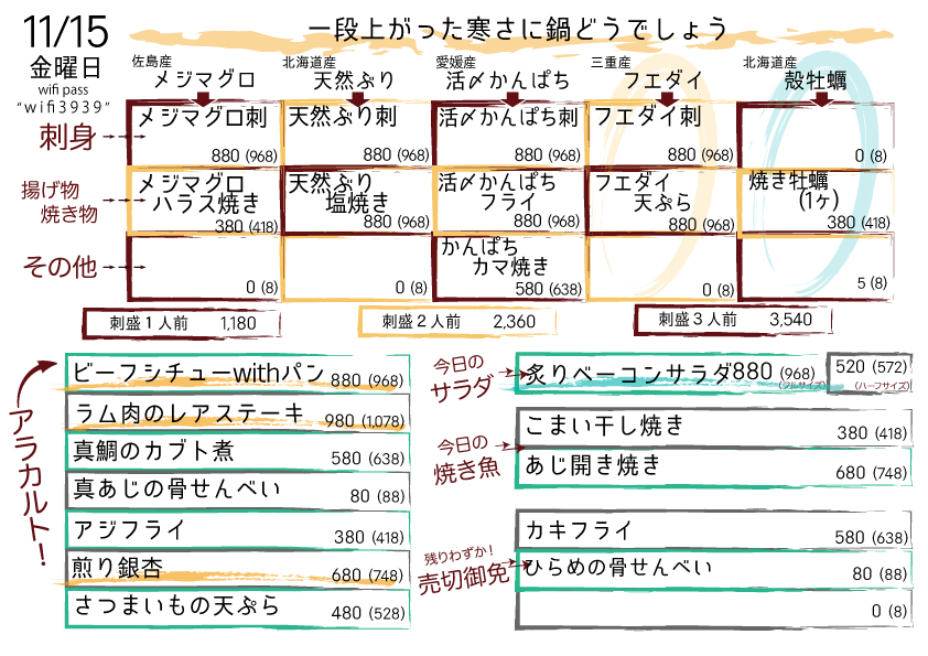 本日の日替りメニュー