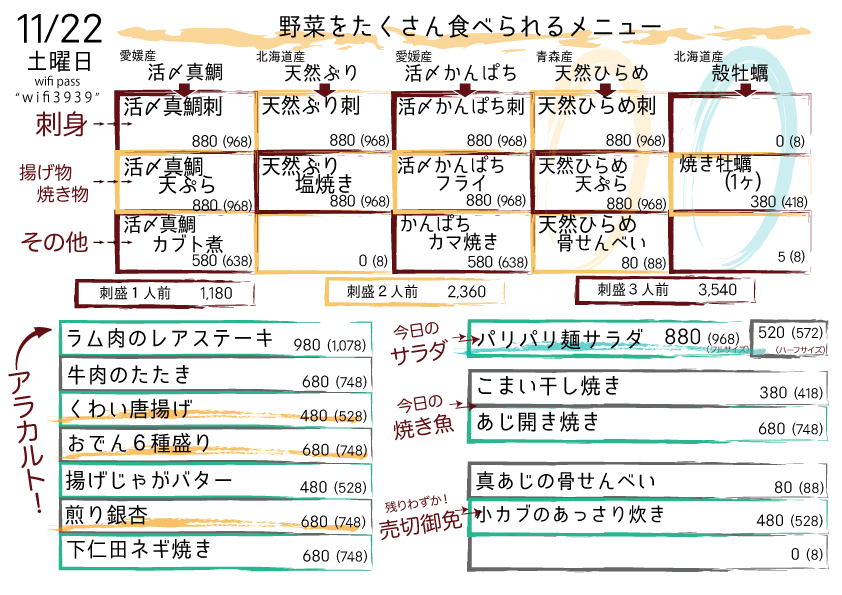 本日の日替りメニュー