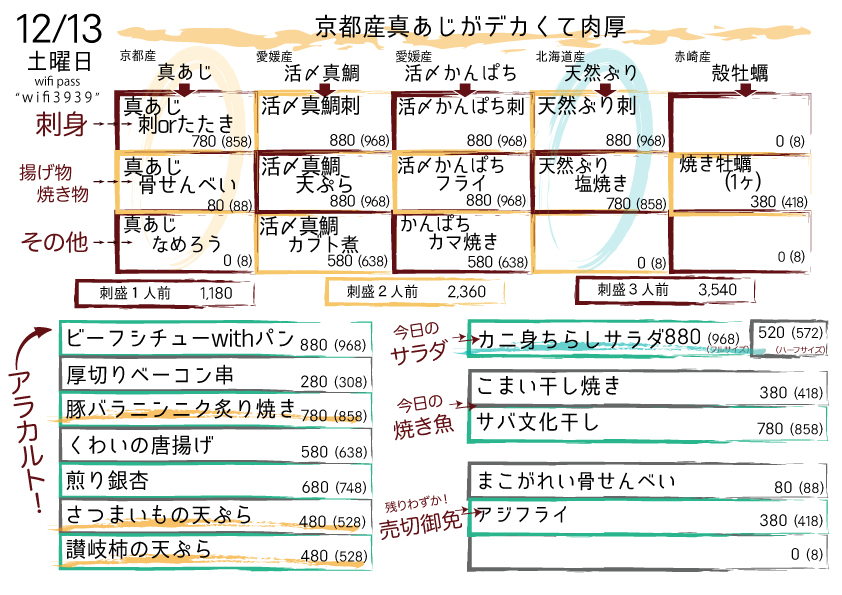 として、ご来店の際には【京都産 真あじ】をぜひ。