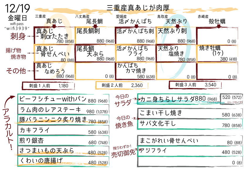 筋肉量の多い真あじに間違いなし、として、ご来店の際にはぜひ。