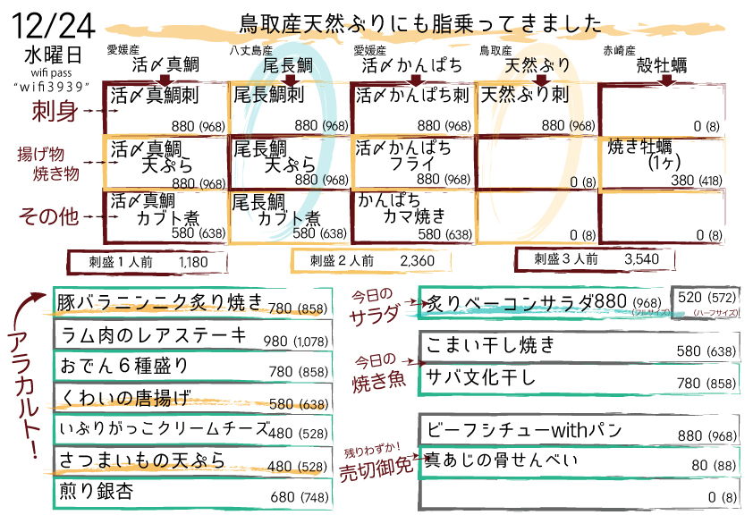 「近くて広くて安い」に強みを持つ当店においては、クリスマス商戦を完全に放棄しているのでもちろんクリスマスっぽいメニューの用意は無い。