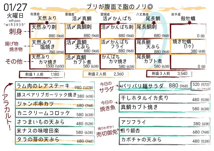 として、本日のオススメは8%の【愛媛産 真鯛】。