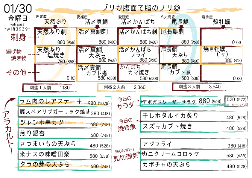 時期がいいゆえにどちらでも美味しい、としてご来店の際には【佐渡産 天然ぶり】をぜひ。