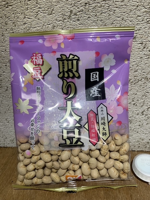 先ほど開店準備の奥様に「節分ですからどうぞ」として上の写真の豆をいただき、ああそういえばと思い出しましたので、配る豆についてはこれからコモディイイダで買ってきます。