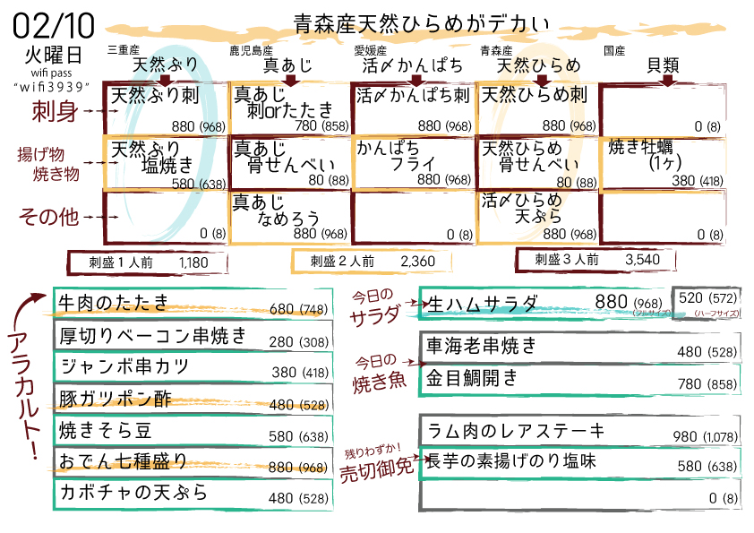 旨みで言えばおそらく金曜くらいまで寝かせたもののほうが出ていますが、活きよくコリコリの白身もそれはそれでいいよね、としてご来店の際にはぜひ。