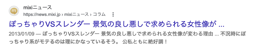 「不景気になると安心感を求めてふくよかな人類が好まれ、好景気になると痩せた人間が好まれる」がどの程度確実かと言えば、その言い伝えについて検索したところ2013年のmixiニュースが検索上位に来るくらいの信憑性がある。