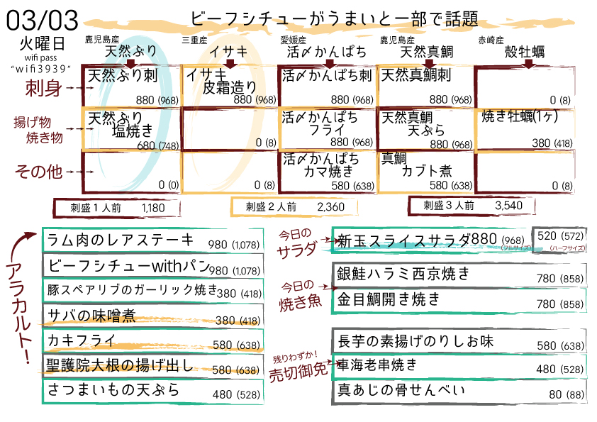 本日の日替りメニュー