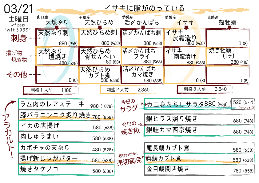 本日の日替りメニュー