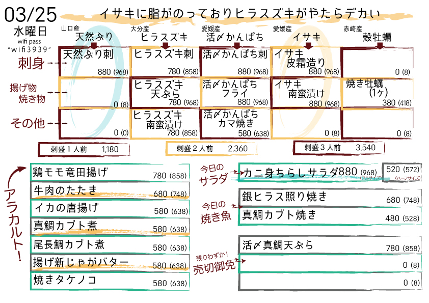 本日の日替りメニュー