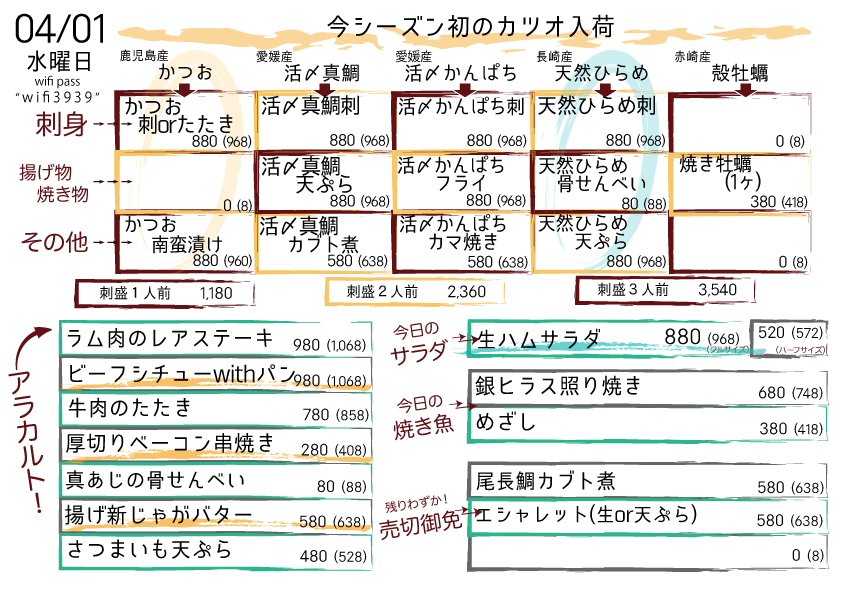 ゆえ、本日におきましても雨がなんだ、という気概でのご来店および【愛媛産 活〆真鯛】のご注文、お待ちしております!!