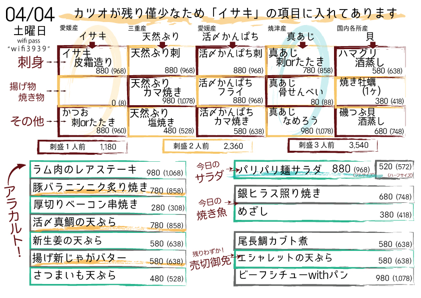 として、ご来店の際には【愛媛産 イサキ】をぜひ。