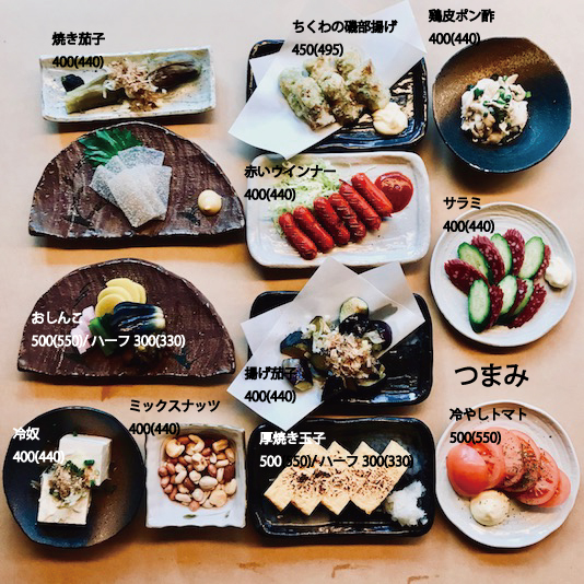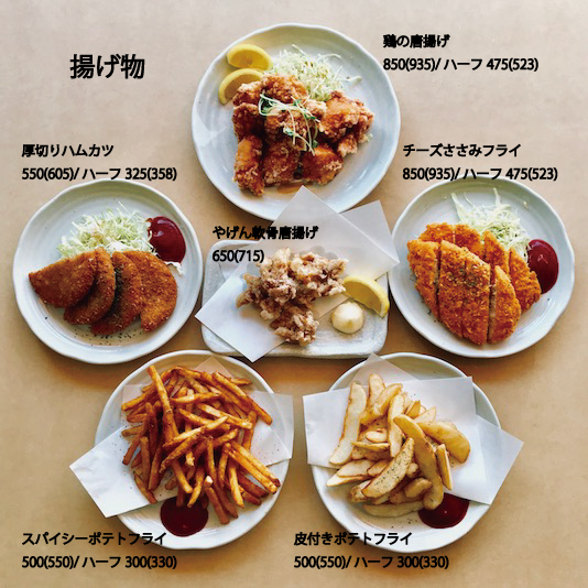 ↓定食↓ 鶏唐揚げ定食 770(847) ロースとんかつ定食 1,250(1,375) 焼きサバ定食 950(1,045) チーズささみフライ定食 820(902) シカorイノシシ餃子定食 1,150(1,265) 手羽先餃子定食 900(990) 厚切りハムカツ定食 900(990) 海鮮丼 1,300(1,430) 刺身定食 1,250(1,375)